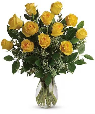 12 Yellow Roses Vase
